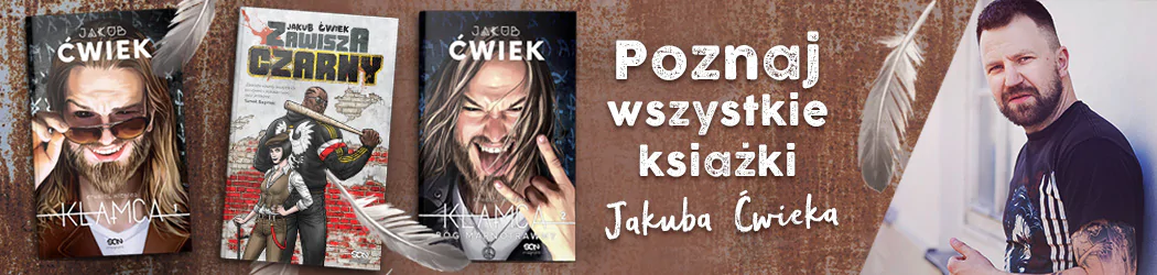 Jakub Ćwiek. Człowiek, który nie potrafi usiedzieć w miejscu. Pisarz, komik stand-upowy, publicysta, podróżnik. Autor ponad dwudziestu książek, a także licznych opowiadań, słuchowisk, artykułów, sztuk teatralnych i scenariuszy. Najbardziej znany ze stworzenia uniwersum Kłamcy, do którego właśnie powraca, wydając „wersję reżyserską”. Rozwija też konsekwentnie światy, w których prym wiodą Chłopcy – dorośli pomagierzy Piotrusia Pana – czy polscy superbohaterowie Zawisza Czarny i Dreszcz.