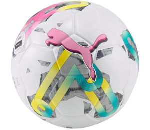 Piłka nożna Puma Orbita 5 HYB biało-zielono-różowa 083783 01 Właściwości:Piłka Puma to świetny model treningowy przeznaczony do rozgrywek na naturalnej murawie lub orliku.Hybrydowa konstrukcja z...