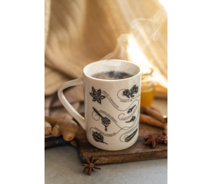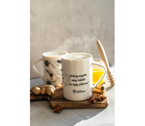 Kubek z przepisem na Biały Napar. Dzięki dużej pojemności (430 ml to prawie pół litra) dorobił się przezwiska “wiaderko”. Jest pojemny, stabilny i minimalistyczny.