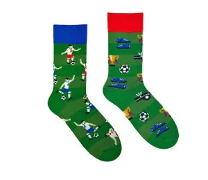 Skarpetki kolorowe w piłkarzy, boisko i piłki. Skarpety wzorowane dla małych i dużych, dzieci i dorosłych, kobiet i mężczyzn.