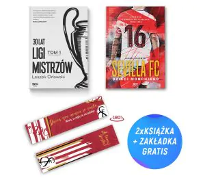 - e-book "30 lat Ligi Mistrzów. Tom 2" (wysyłany drogą mailową);- e-book "30 lat Ligi Mistrzów. Tom 1" (wysyłany drogą mailową).