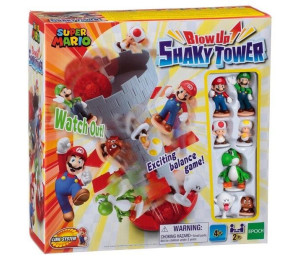 Super Mario Blow up Shaky Tower to zabawna gra towarzyska dla dzieci i dorosłych. Podczas gry figurki Super Mario umieszcza się kolejno na platformach wieży. Ale uwaga! Nie może przy tym spaść...