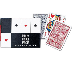 Klasyczne, wysokiej jakości karty do kanasty renomowanej firmy Ferd. Piatnik & Sohne. W komplecie 2 talie w efektownym Piatnikowskim pudełku. Talie składają się z 55 plastikowanych kart o wymiarach...