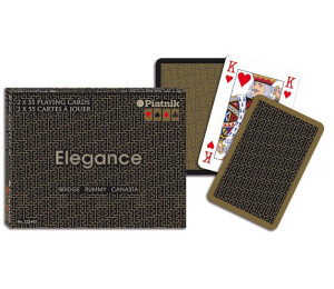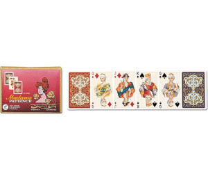 Najwyższej jakości karty do pasjansa renomowanej firmy Ferd. Piatnik & Sohne. Eleganckie pudełeczko kryje 2 niewielkie talie. Na rewersach (koszulkach) zdobiony ornament. Mniejszy format...