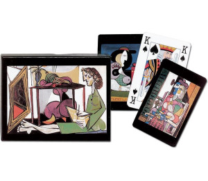 Najwyższej jakości karty do gry renomowanej firmy Ferd. Piatnik & Sohne. W komplecie 2 talie w eleganckim czarnym pudełku. Na rewersach (koszulkach) i na pudełku obrazy Pablo Picasso. Talie...
