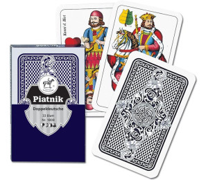 Najwyższej jakości karty do skata renomowanej firmy Ferd. Piatnik & Sohne. Bardzo popularne na Śląsku. Klasyczna talia 33 kart do skata (doppeldeutsche) z tradycyjnymi awersami i koszulkami...