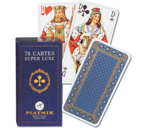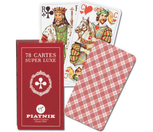 Wysokiej jakości karty do gry renomowanej firmy Ferd. Piatnik & Sohne. W komplecie 2 talie (nieco większe) w standardowym Piatnikowskim pudełku. Talie składają się z 55 plastikowanych kart o...
