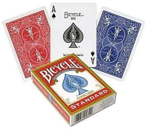 Najbardziej popularne karty na świecie z powiększonym indeksem! Standardowe indeksy na przeciwległych narożnikach karty. 52 karty + 2 jokery powlekane plastikiem, Air Cushion Finish. Rozmiar...