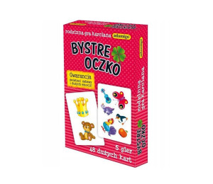 Rodzinna gra karciana. Zestaw zawiera 48 kart o wymiarach 11x7,4cm instrukcję z opisem pięciu wesołych gier rodzinnych.Gry zawierają elementy edukacyjne. Podczas zabawy gracze ćwiczą...