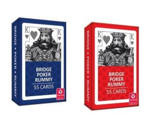 Tradycyjna talia kart do brydża, pokera dostępna jest w dwóch kolorach czerwonym i niebieskim (55 kart do gry).Produkt wysyłany losowo, cena za 1 talię