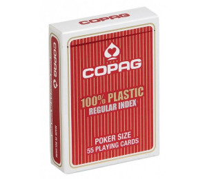 Niepowtarzalna talia dla początkujących jak i profesjonalnych graczy.Produkt zawiera 52 karty do gry + 3 Jokery w formacie 6.3 x 8.8 cm. Czerwone karty Copag Jumbo Index są wykonane w 100% z...