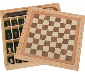 Szachy drewniane w rozmiarze 31x31cm po rozłożeniu. Sugerowany wiek graczy: 7-99 lat. Liczba graczy: 2 Orientacyjny czas gry: 40 minut. Zawartość: drewniana kasetka z planszą, drewniane...