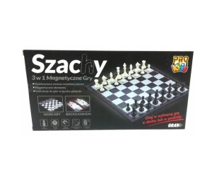 Gra 3w1 Szachy, warcaby i Backgammon. Pionki i figury w podstawie zamontowane mają magnesy dzięki czemu rozstawienie jest stabilne i można grać w podróży.