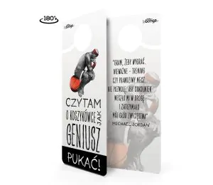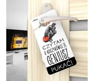 Koszykarska dwustronna zawieszka na drzwi. Idealnie nadaje się dla maniaka NBA, który czyta i ogląda koszykówkę "jak geniusz". Pamiętaj, żeby pukać!