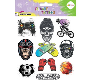 Tatuaże Szalone potworki W tym zestawie znajdziesz, aż 35 kolorowych, zmywalnych tatuaży. Dużo tu inspiracji potworkami i sportem....udanej zabawy!!! INSTRUKCJA1. Wytnij wybrany element.2. Usuń...