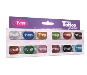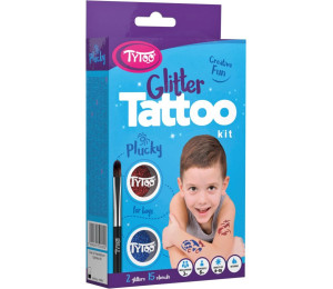 Tytoo to brokatowe pyły do samodzielnego wykonywania niezwykłych, tematycznych i brokatowych tatuaży! Zestaw zawiera 15 tematycznych szablonów związanych ze zwierzętami, sportami i środkami...
