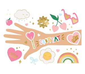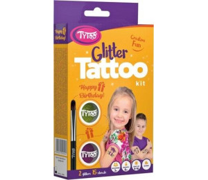 Tytoo to brokatowe pyły do samodzielnego wykonywania niezwykłych, tematycznych i brokatowych tatuaży! Zestaw zawiera 15 tematycznych szablonów związanych ze urodzinami.