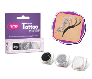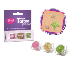 Tytoo to brokatowe pyły do samodzielnego wykonywania niezwykłych, tematycznych i brokatowych tatuaży! Za pomocą pędzelka kosmetycznego dołączonego do zestawu, należy nałożyć pył na powierzchnię...