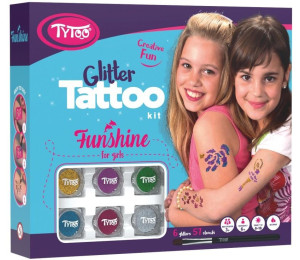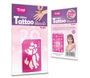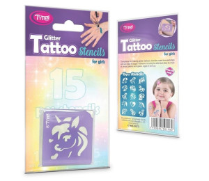 Tytoo to brokatowe pyły do samodzielnego wykonywania niezwykłych, tematycznych i brokatowych tatuaży!Zestaw zawiera 15 tematycznych szablonów związanych ze zwierzętami, roślinami i księżniczkami.
