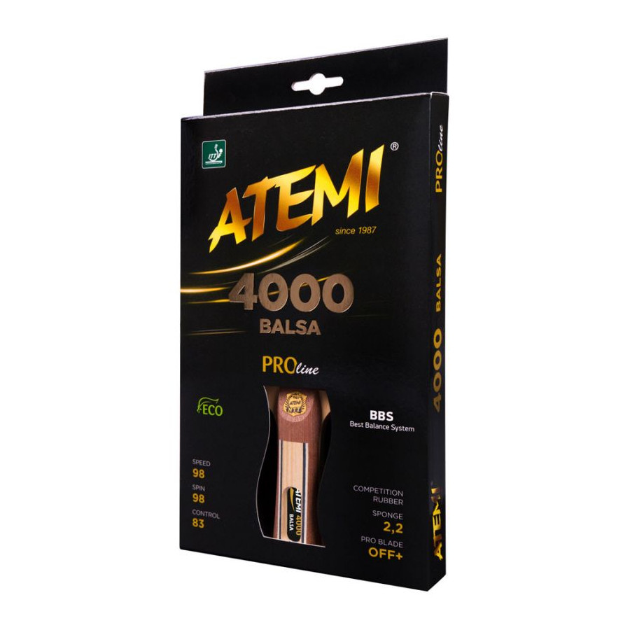 Rakietka do tenisa stołowego ATEMI 4000 BALSA. Przeznaczona do zaawansowanej gry ofensywnej.