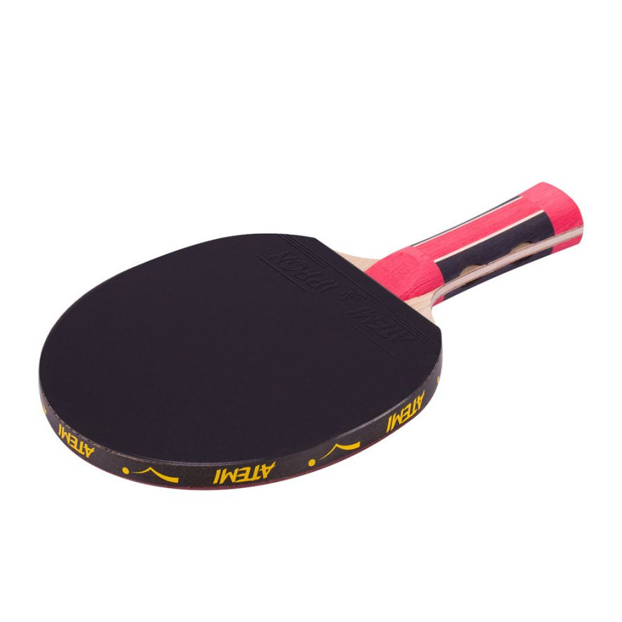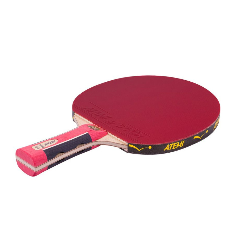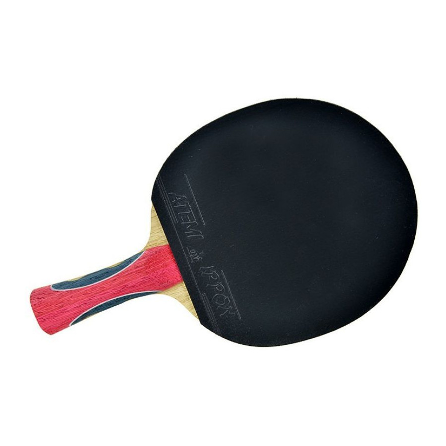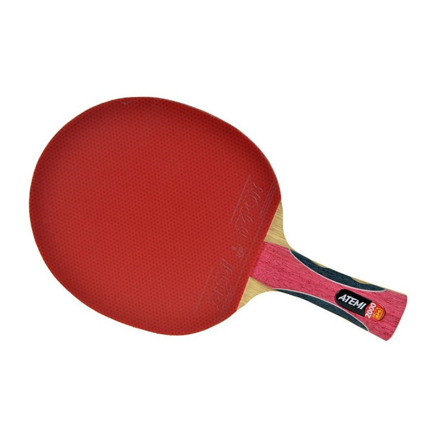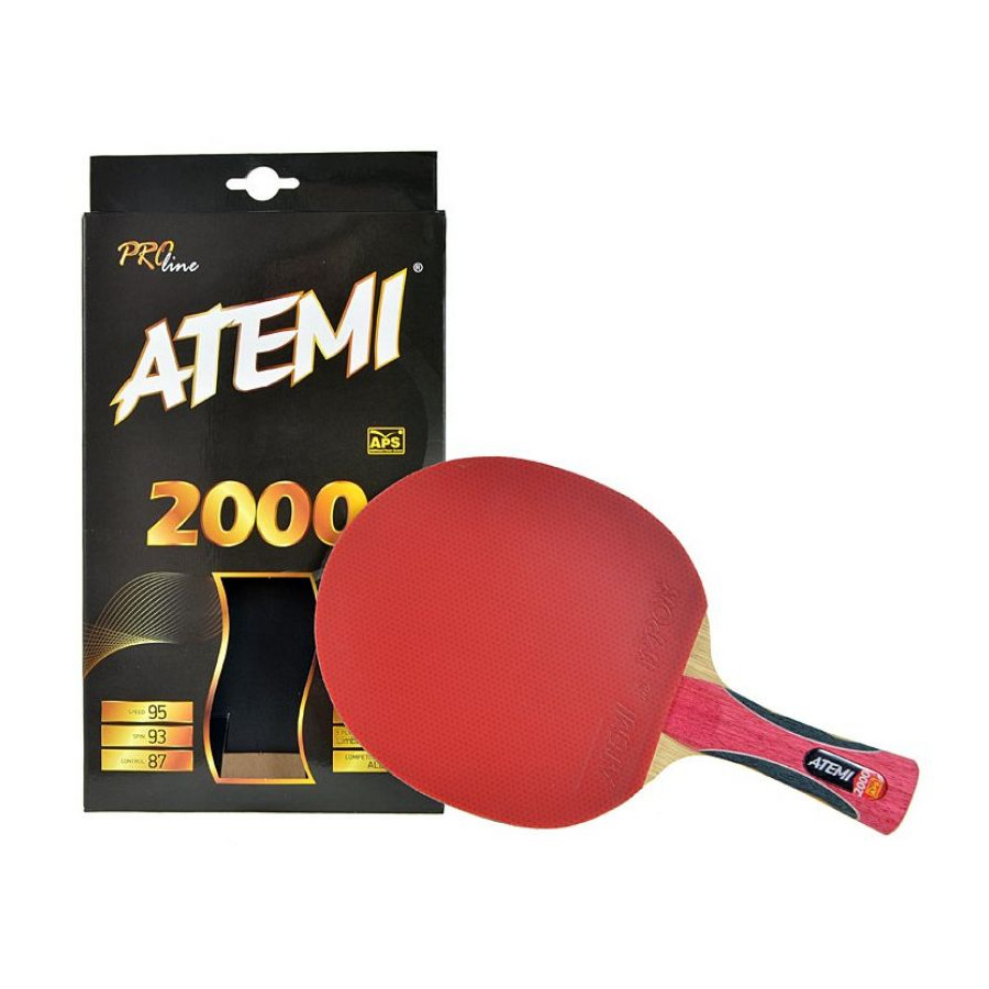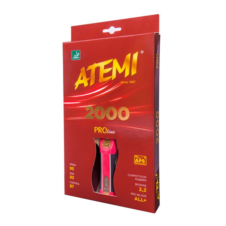 Rakietka Atemi 2000 z serii Pro line z uchwytem concave(wklęsły) przeznaczona jest na mecze rozgrywane na najwyższym poziomie. Polecana jest dla profesjonalistów. Posiada atest ITTF. Jest idealnym rozwiązaniem dla zawodowych graczy lubiących rotację oraz szybkość na niewiarygodnym wysokim poziomie przy zachowaniu doskonałej kontorli nad piłeczką. Rakietka Atemi 2000 Pro line poprawi Twoje wyniki w grze w tenisa stołowego. Wykonana została z 5 warstwowej sklejki (Limba, Acajou, Abachi), gąbki o grubości 2,2 mm i okładzin ofensywnych IPPON. Zastosowany w tej rakietce opatentowany system APS - Additional Power System to nowość w rakietkach do tenisa stołowego. Puste przestrzenie, które zostały umieszczone w rączce rakietki, zmniejszaj ciężar i przesuwają środek ciężkości rakietki z dala od rączki. Dzięki temu możliwe są bardzo szybkie przesunięcia bez utraty czucia piłeczki. Konstrukcja rączki wykazuje większą elastyczność po obu stronach poprzez uchwyty, które działają jak "sprężyny". Dzięki tej funkcji, gracz osiąga lepszą kontrolę piłeczki.