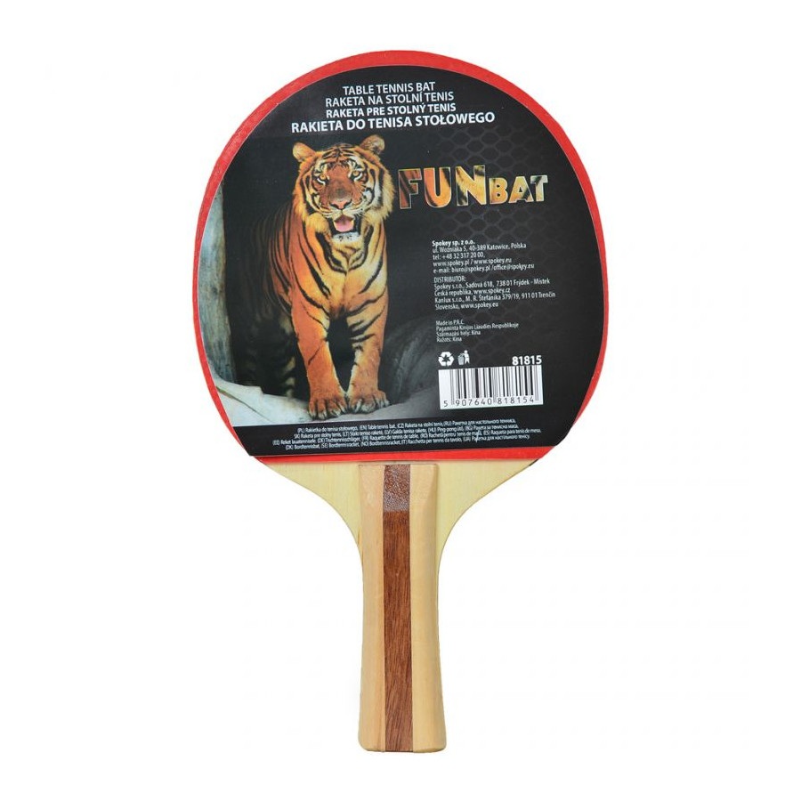 RAKIETKA DO PING PONGA SPOKEY FUN BAT 81815. Rakietka do tenisa stołowego z najpopularniejszą rączką typu FL i okładziną o grubości 1,3mm przeznaczona do gier rekreacyjnych.