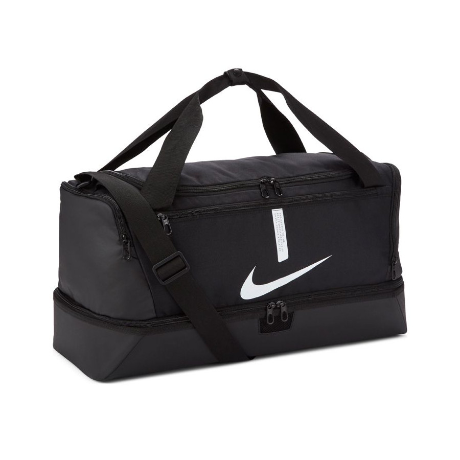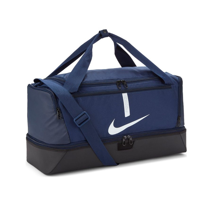 Torba Nike Academy Team Hardcase ma trwałą konstrukcję i umożliwia utrzymanie porządku. Wzmocniony spód dodatkowo zabezpiecza zawartość, a liczne mocowania umożliwiają przenoszenie sprzętu piłkarskiego na różne sposoby.