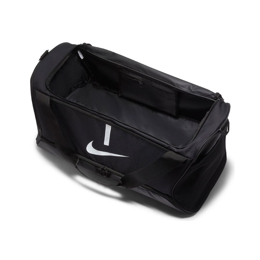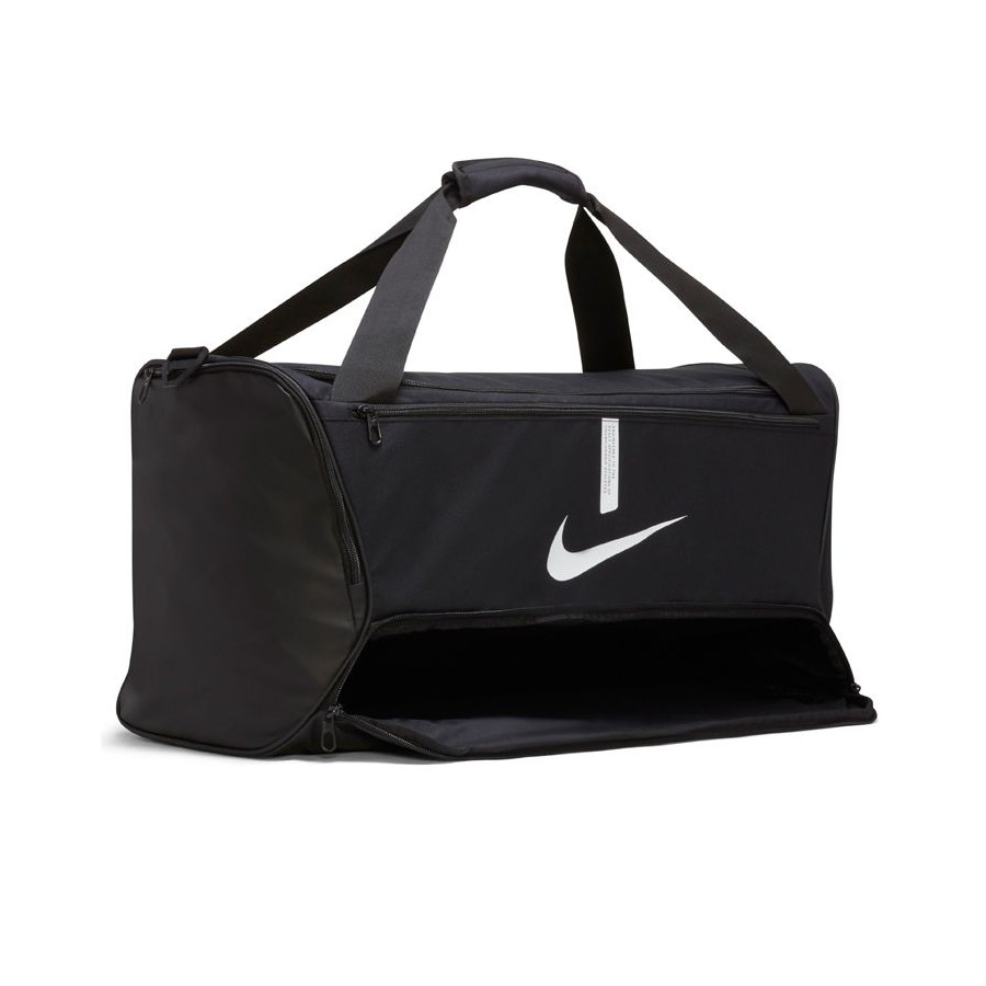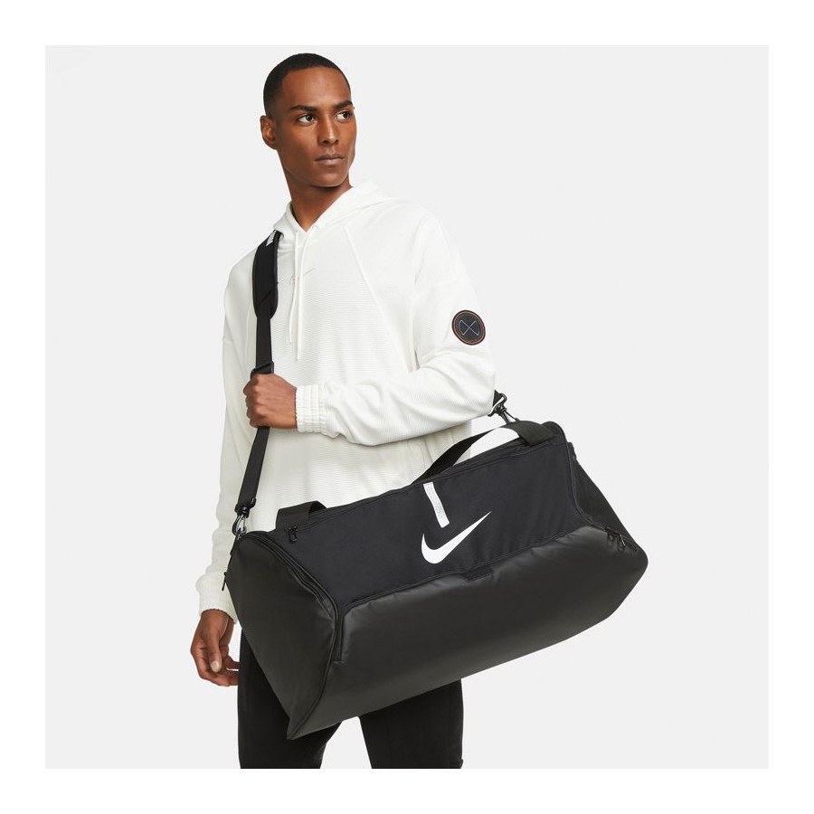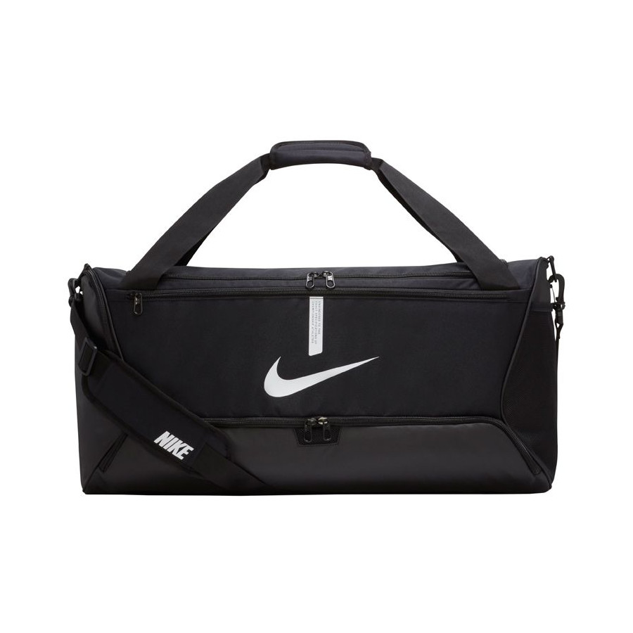 Torba Nike Academy Team ma trwałą konstrukcję i umożliwia utrzymanie porządku. Specjalne przegrody zapewniają miejsce do przechowywania piłki, korków i ubrań, a liczne paski dają możliwość przenoszenia sprzętu w drodze na boisko. Przegroda główna jest na tyle pojemna, że pomieści piłkę i inne przedmioty.
