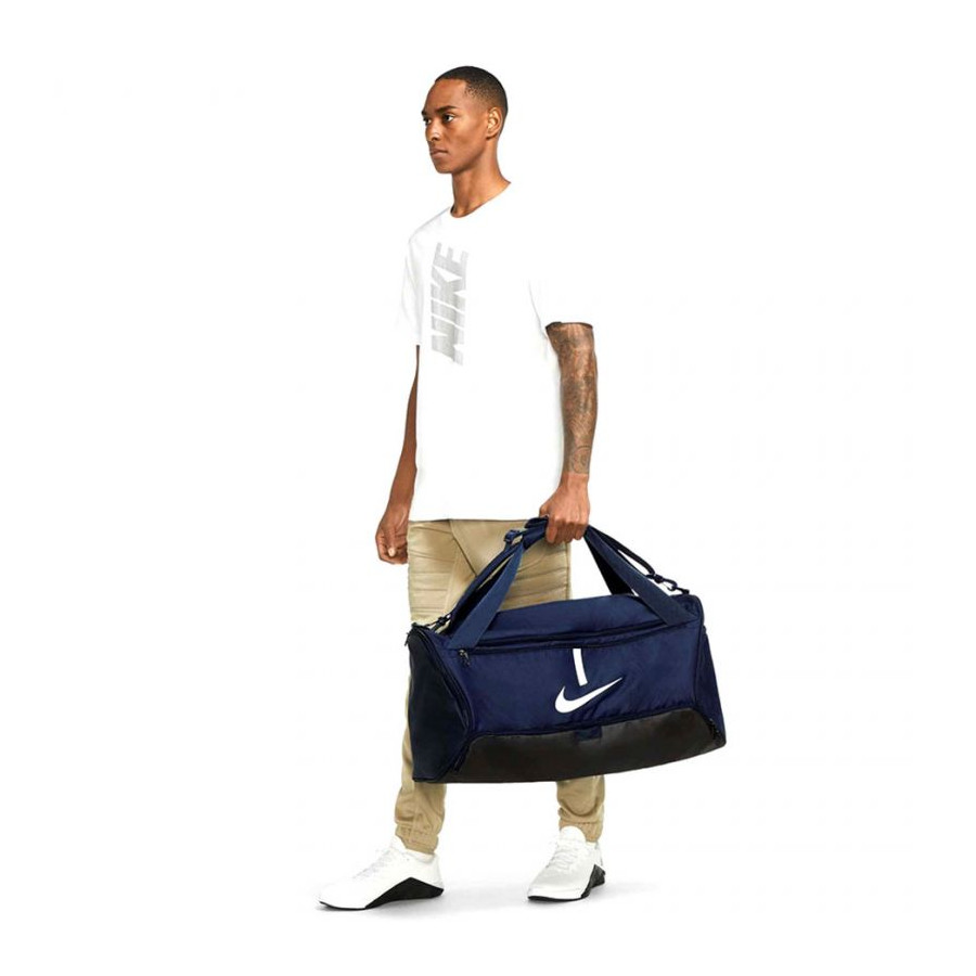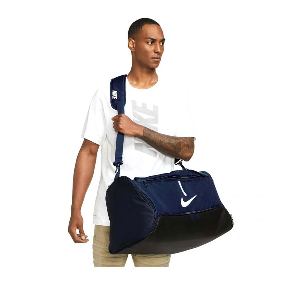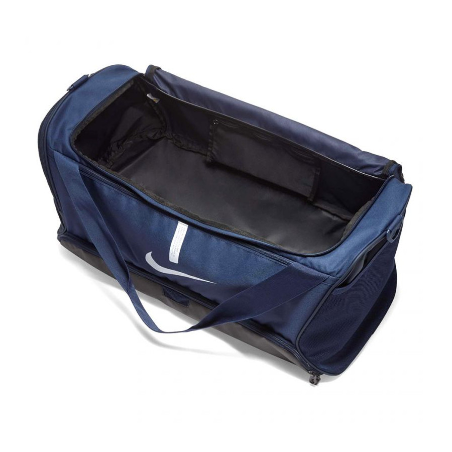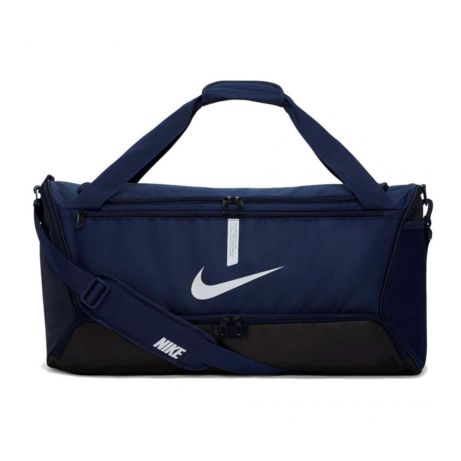 Torba Nike Academy Team ma trwałą konstrukcję i umożliwia utrzymanie porządku. Specjalne przegrody zapewniają miejsce do przechowywania piłki, korków i ubrań, a liczne paski dają możliwość przenoszenia sprzętu w drodze na boisko. Przegroda główna jest na tyle pojemna, że pomieści piłkę i inne przedmioty.