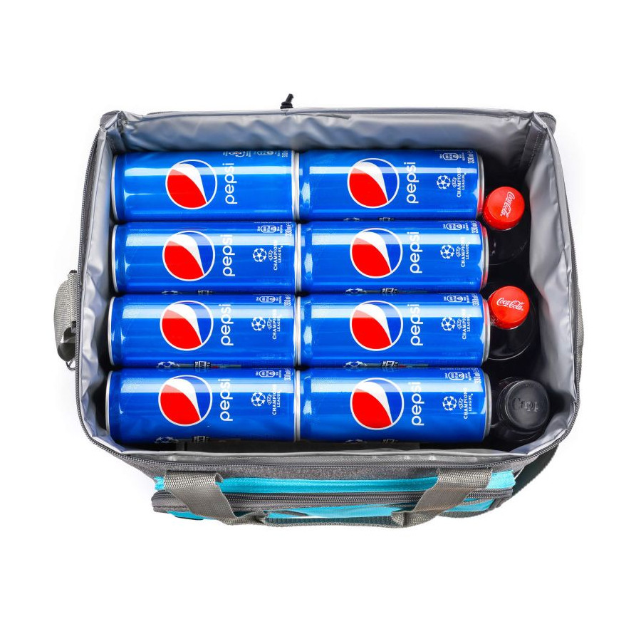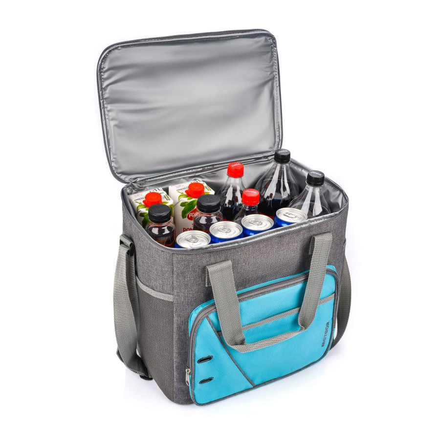 - Warstwa izolacyjna pomaga utrzymać niską temperaturę produktów nawet przez kilka godzin