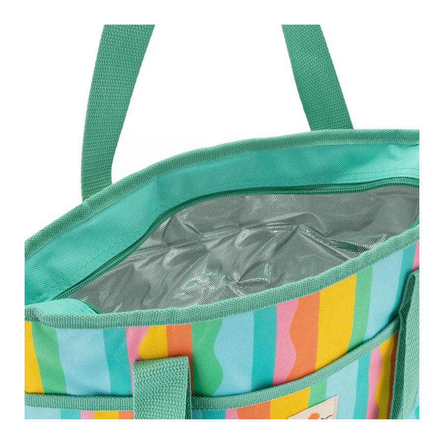 Torba termiczna Spokey ACAPULCO spisze się idealnie podczas wyjazdów na plażę, rodzinnych wycieczek, pikników oraz wszędzie tam, gdzie planujesz zabrać ze sobą wiele niezbędnych przedmiotów. Wnętrze wypełnione aluminium zapobiega nagrzewaniu się zawartości, co pozwala zachować świeżość i chłód wody, przekąsek i owoców, a także sprzyja porządkowi w środku torby. Warstwa izolacyjna pomaga utrzymać niską temperaturę produktów nawet przez kilka godzin.