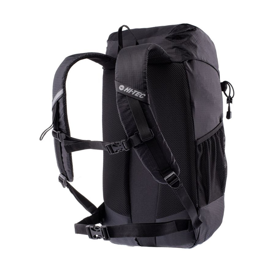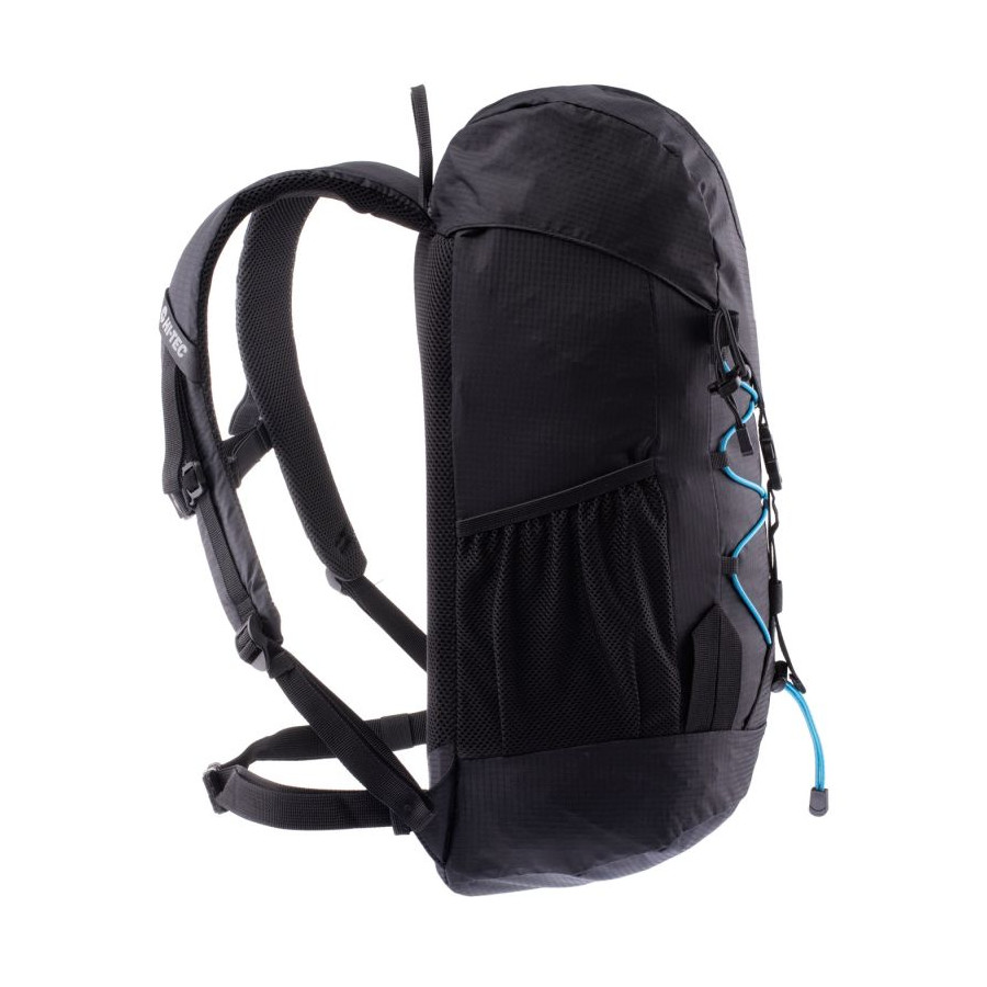 Z przodu znajduje się elastyczny sznurek do troczenia np. kurtki przeciwdeszczowej, a po bokach siateczkowe kieszenie idealne na butelki z wodą.