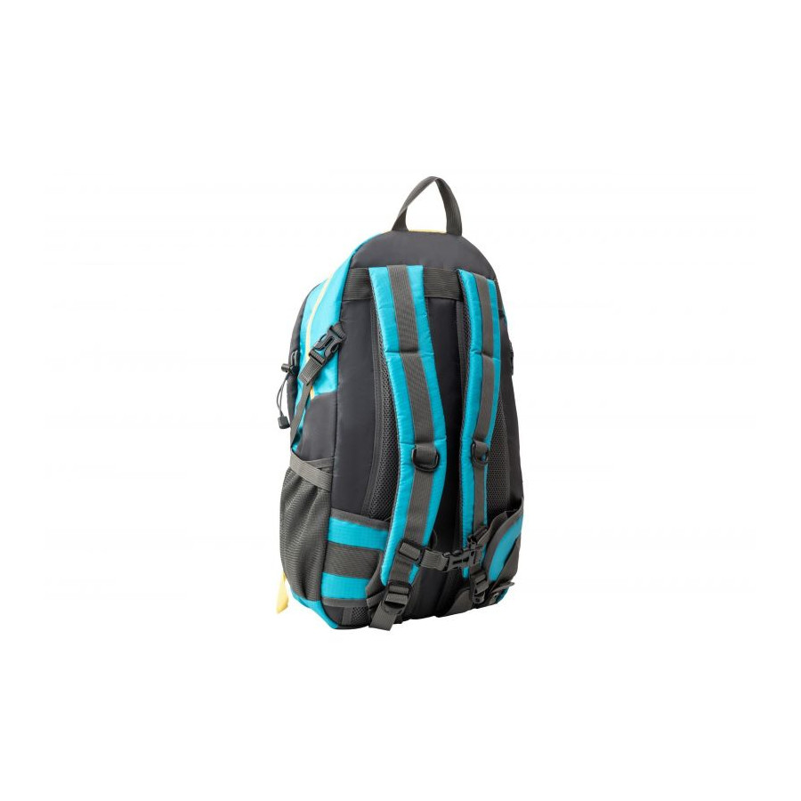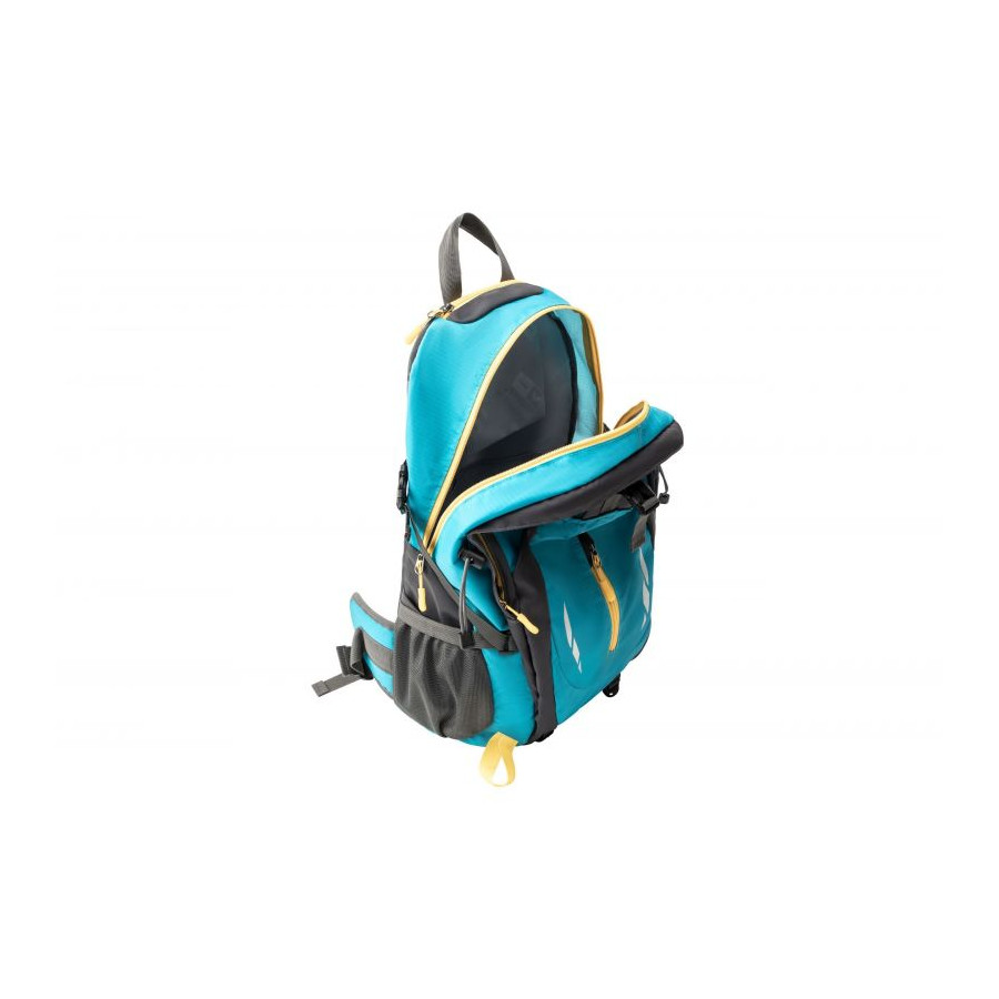 Plecak wykonany został z poliestru o dwóch gęstościach, w efekcie czego jego konstrukcja jest odporna na uszkodzenia mechaniczne i łatwa w czyszczeniu. Do dyspozycji masz wiele łatwo dostępnych kieszeni i przegródek, w których możesz dogodnie rozmieścić cały Twój ekwipunek. Bidony z piciem włożyć możesz do bocznych kieszeni, a drobiazgi potrzebne pod ręką do frontowej kieszonki zapinanej na suwak. Przednia kieszeń zapinana za pomocą klamry może służyć jako schowek na okrycie wierzchnie.