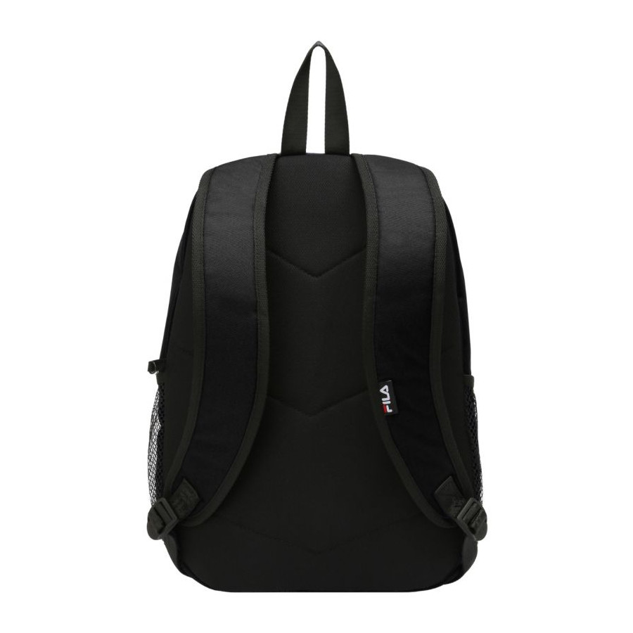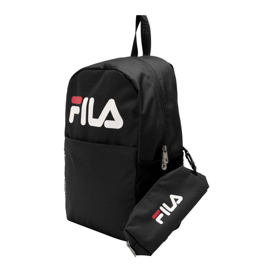 Plecak Fila Favoriten Back To School czarny FBT0003 80010 Plecak Fila sprawdzi się w codziennym użytkowaniu. Wytrzymała tkanina. Jedna komora główna z dwubiegunowym zamkiem błyskawicznym. Regulowane, wyściełane szelki. Uchwyt do przenoszenia. 2 kieszenie boczne o siateczkowej strukturze. 1 zapinana kieszeń na froncie. Dwie, otwarte przegrody wewnątrz. Piórnik. Dane techniczne:· Wymiary: 42x30x15 cm· Pojemność: 19 l·