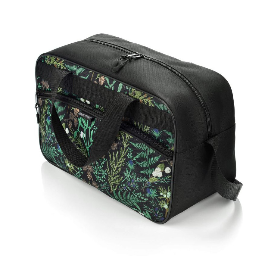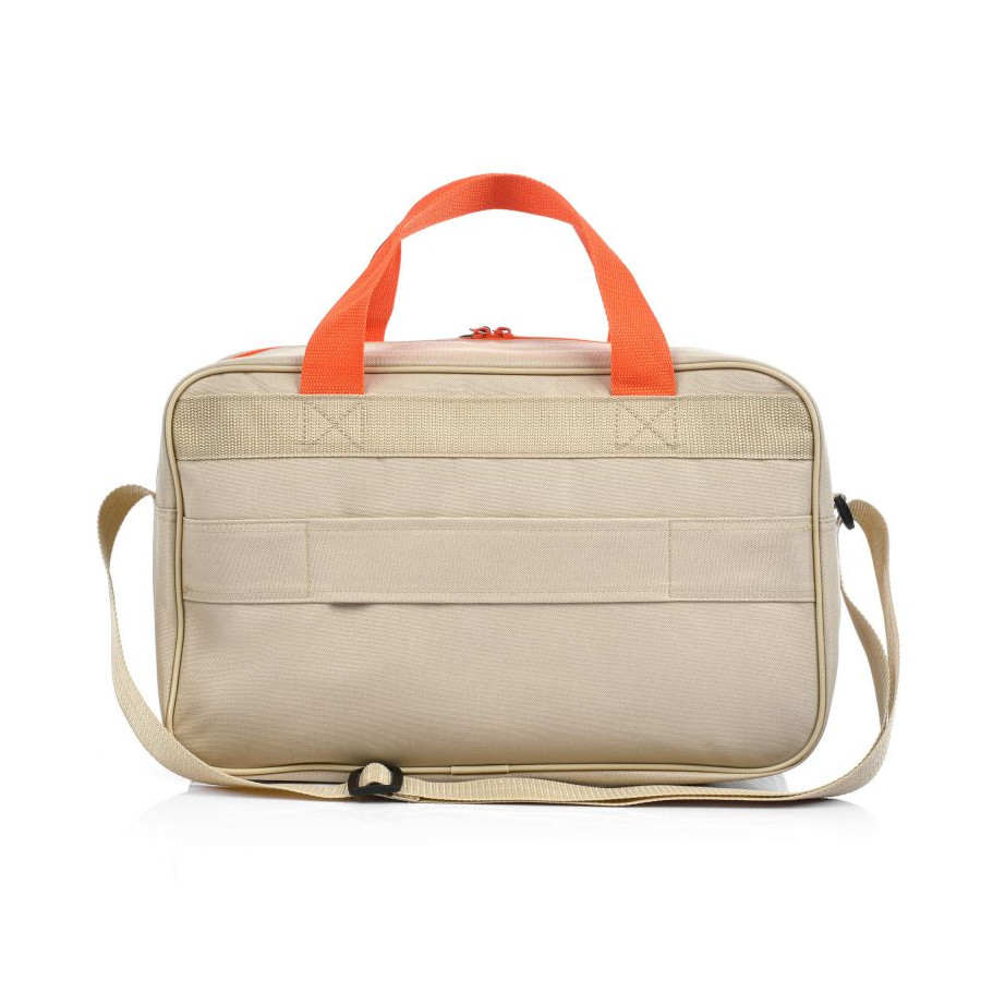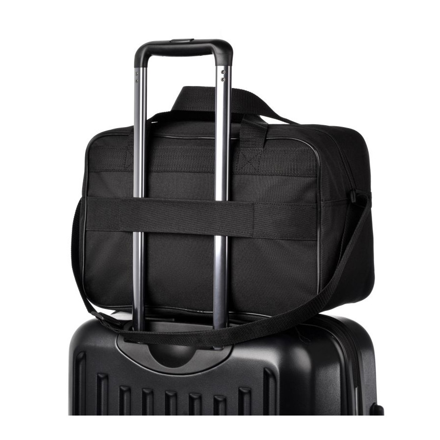 • Dzięki wyposażeniu w dużą i pojemną komorę główną pozwala na wygodne rozdysponowanie miejsca w torbie i zapewnia łatwy dostęp do najpotrzebniejszych rzeczy. Na zewnątrz znajduje się mniejsza kieszeń zamykana na zamek błyskawiczny, z przeznaczeniem na drobiazgi. Długi pasek z regulacją i rączki wykonane z taśmy polipropylenowej ułatwiają założenie torby na ramię lub przetransportowanie jej w dłoniach. Z tyłu torby został umieszczony specjalny uchwyt przeznaczony do montażu torby na stelaż walizki na kółkach, co pozwala na swobodne przemieszczanie się w tłumie.