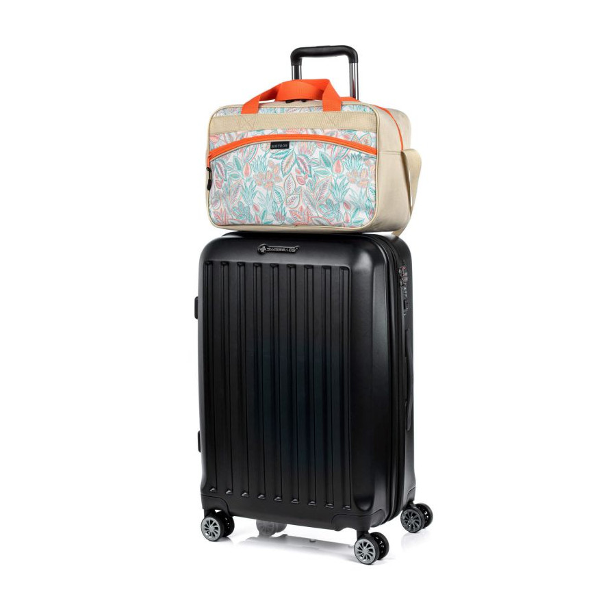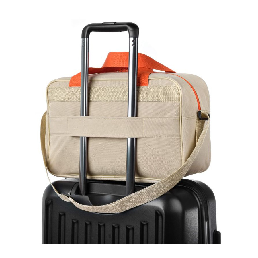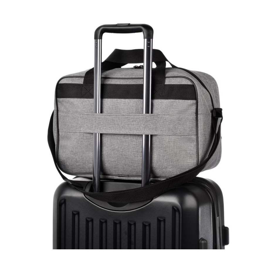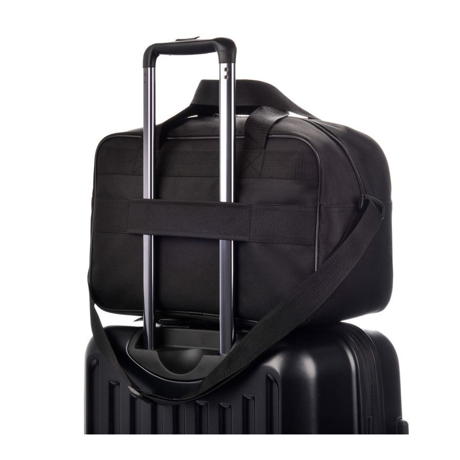 • Praktyczny design – z tyłu torby znajduje się mocowanie, dzięki czemu torbę można nałożyć na rączkę walizki i wygodnie przetransportować w podróży. Stanowi idealne rozwiązanie dla osób, które często wyjeżdżają i potrzebują odpowiedniej organizacji. Uchwyt na walizkę podróżną pozwoli Ci swobodnie przemieścić się w tłumie.