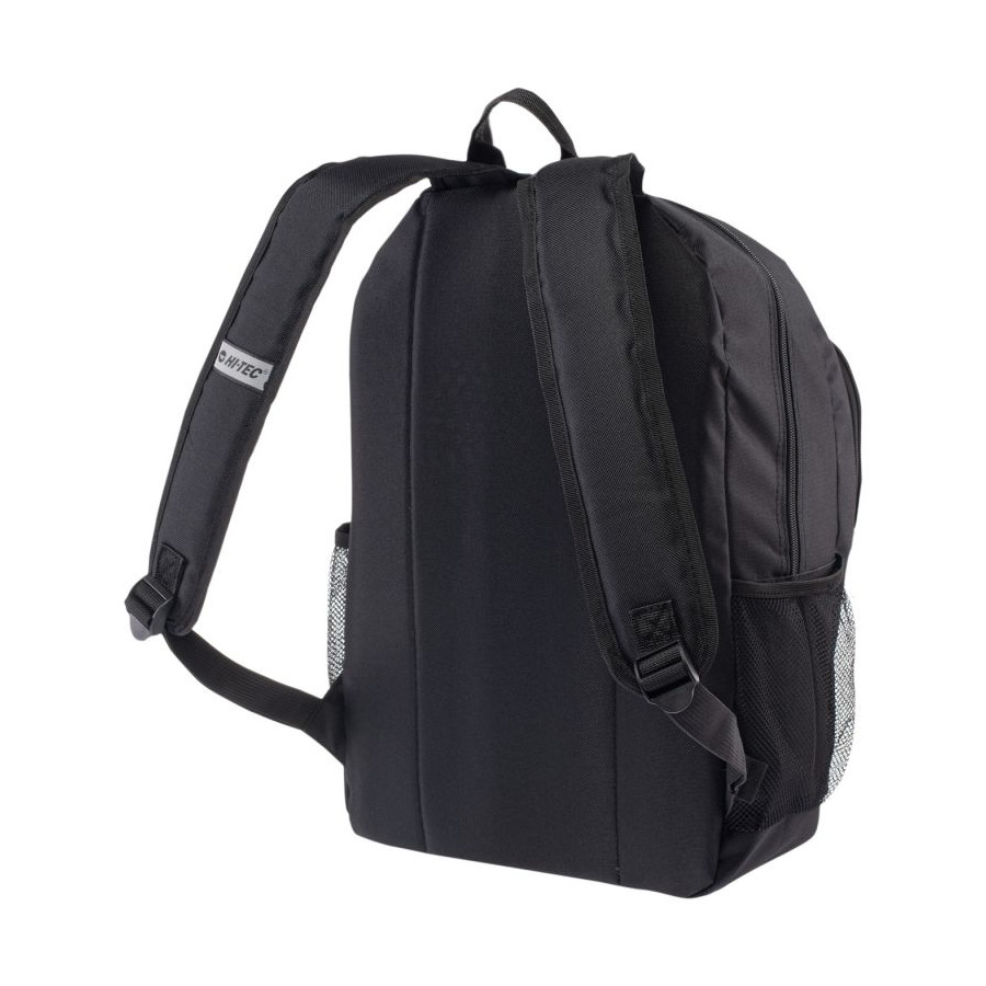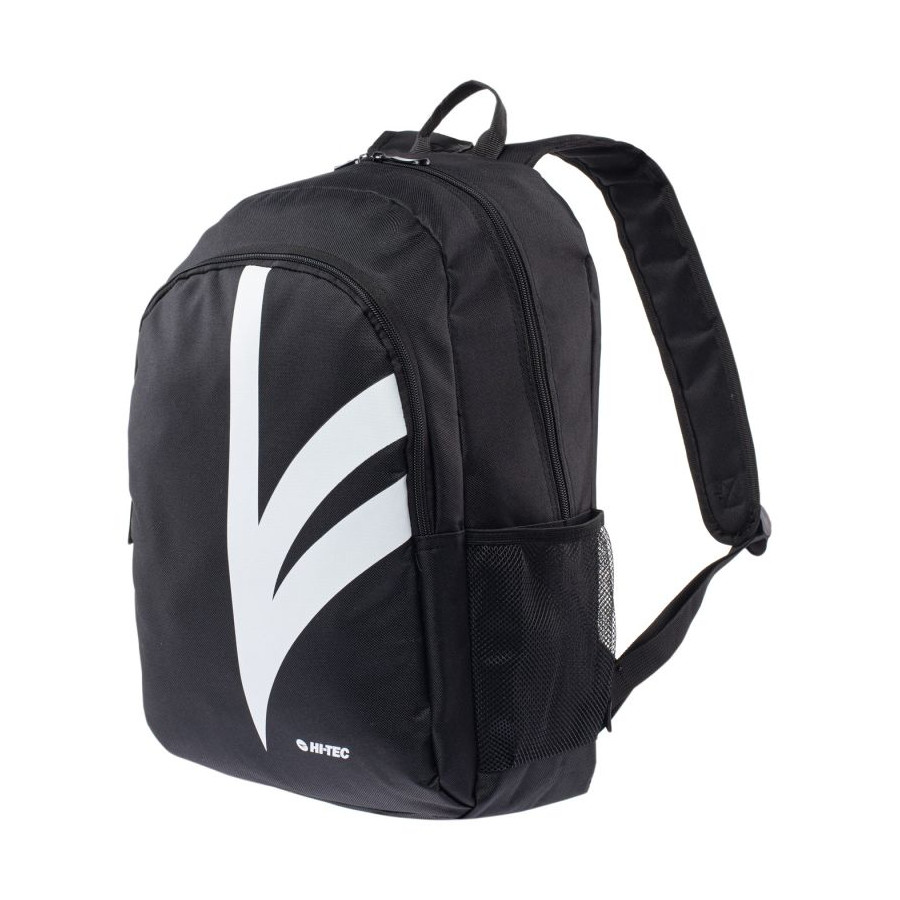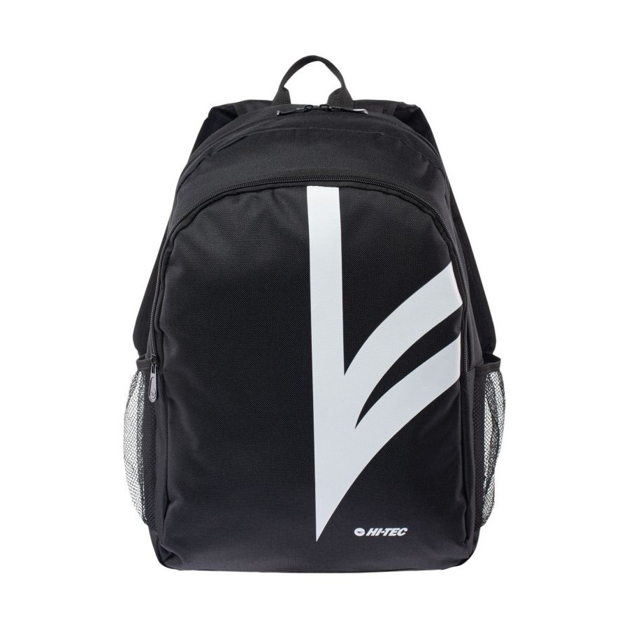 Miejski czarny plecak SKIPTON marki Hi-Tec posiada pojemną komorę główną zamykaną na zamek, w którą spakujesz zeszyty większego formatu lub teczkę. Dodatkowa kieszeń na froncie pomieści inne potrzebne drobiazgu. W dwie siateczkowe kieszenie boczne spakujesz kubek termiczny lub butelkę z wodą. Całość uzupełnia duże logo marki.