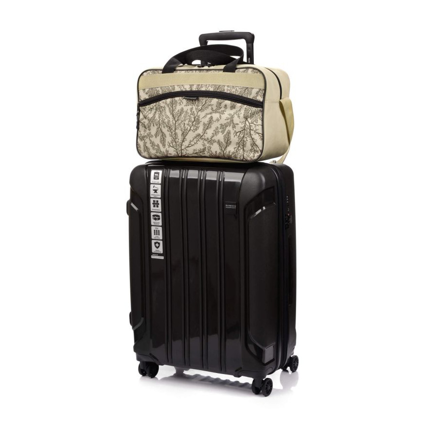 Praktyczny design – z tyłu torby znajduje się mocowanie, dzięki czemu torbę można nałożyć na rączkę walizki i wygodnie przetransportować w podróży. Stanowi idealne rozwiązanie dla osób, które często wyjeżdżają i potrzebują odpowiedniej organizacji. Uchwyt na walizkę podróżną pozwoli Ci swobodnie przemieścić się w tłumie.