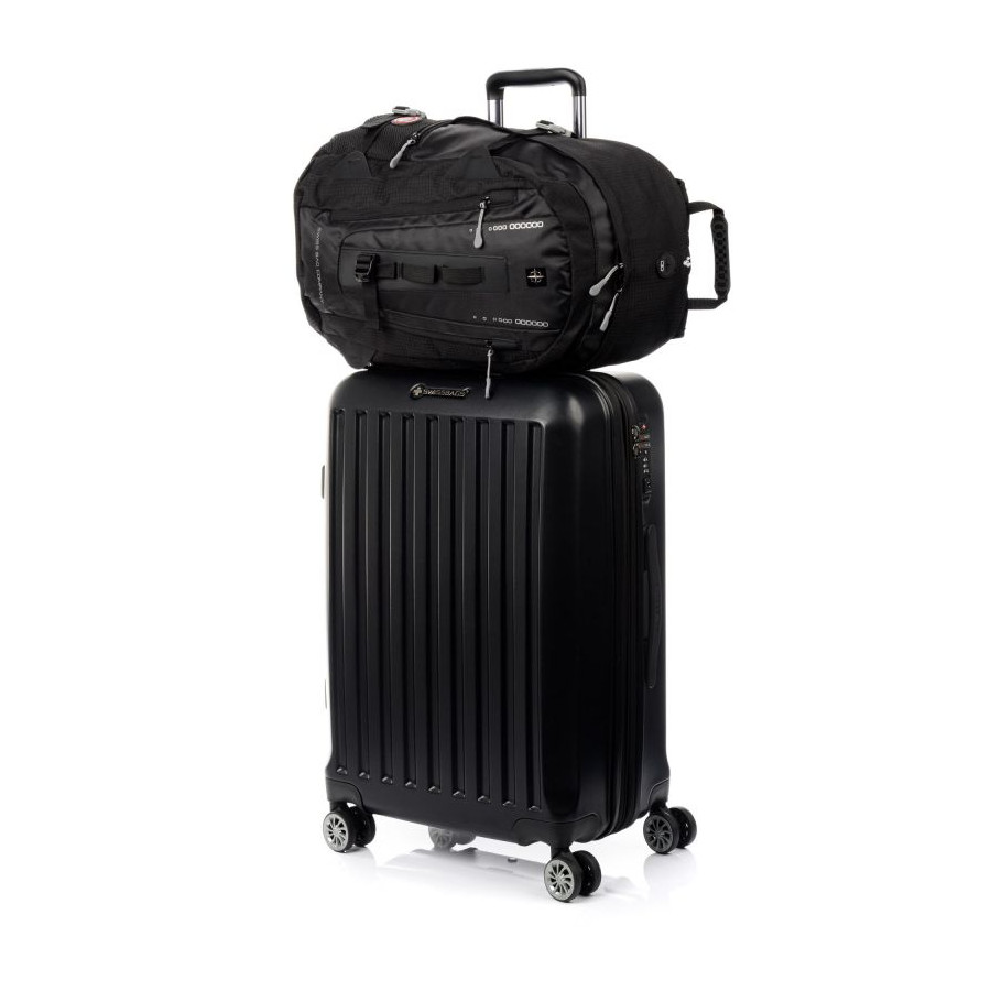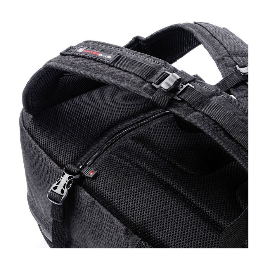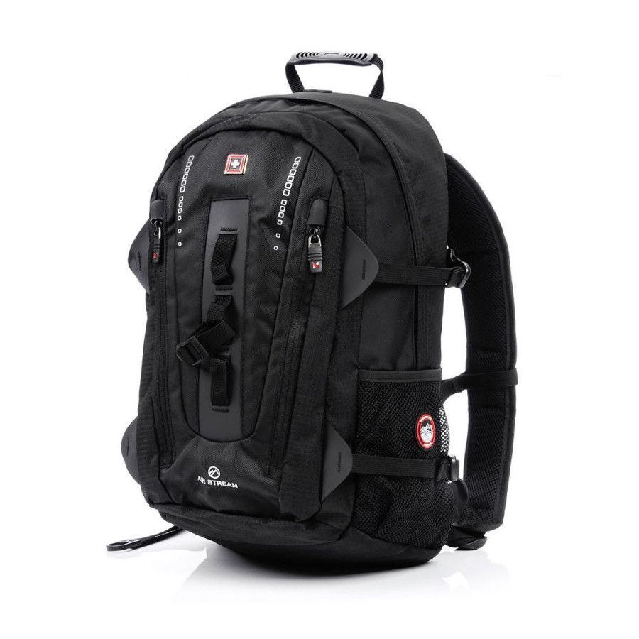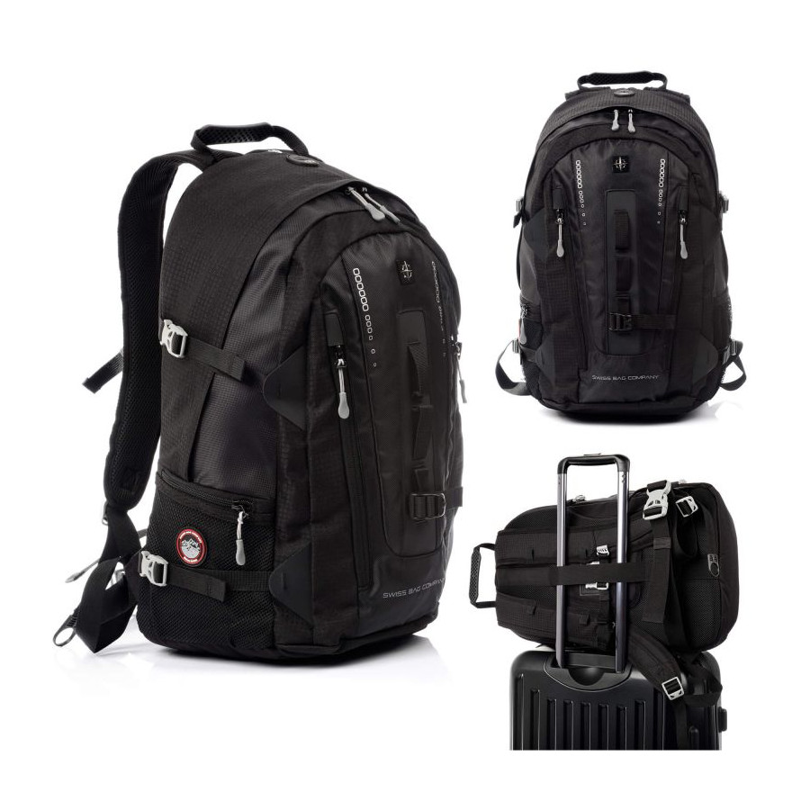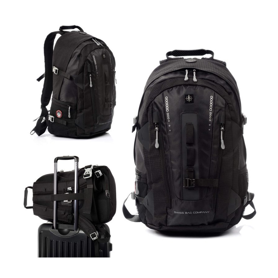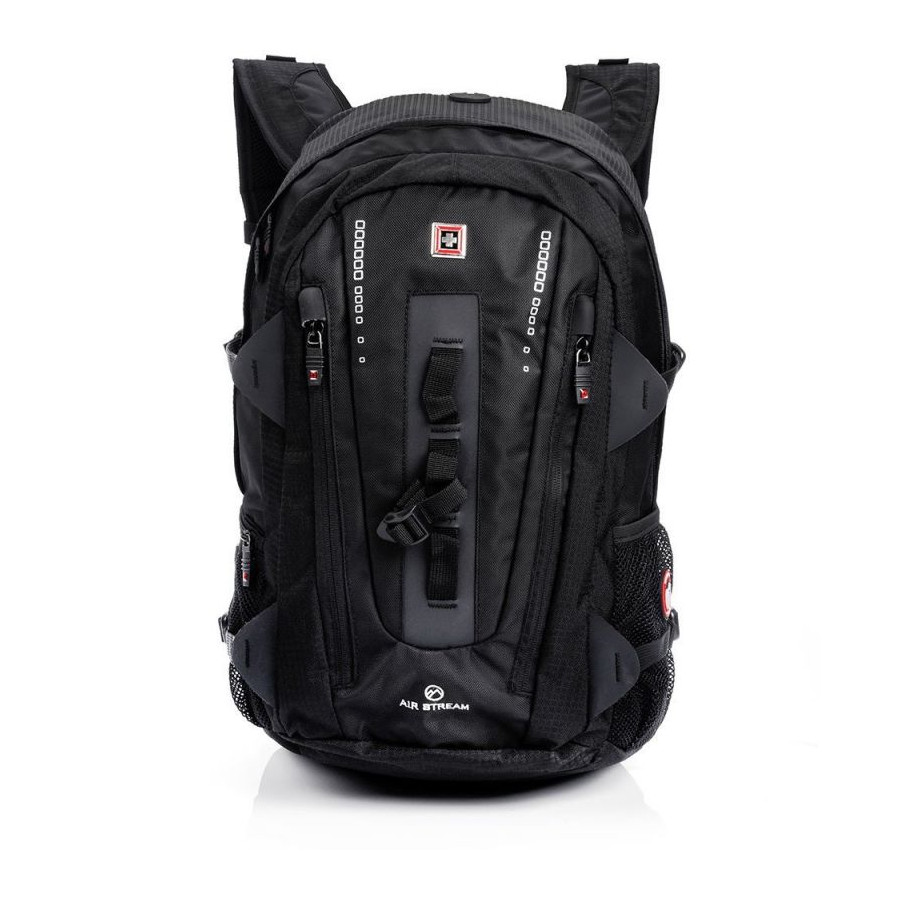- Został wyposażony w specjalne zapięcia z przodu, piękne szwajcarskie logo i 2 otwierane na zamek komory.