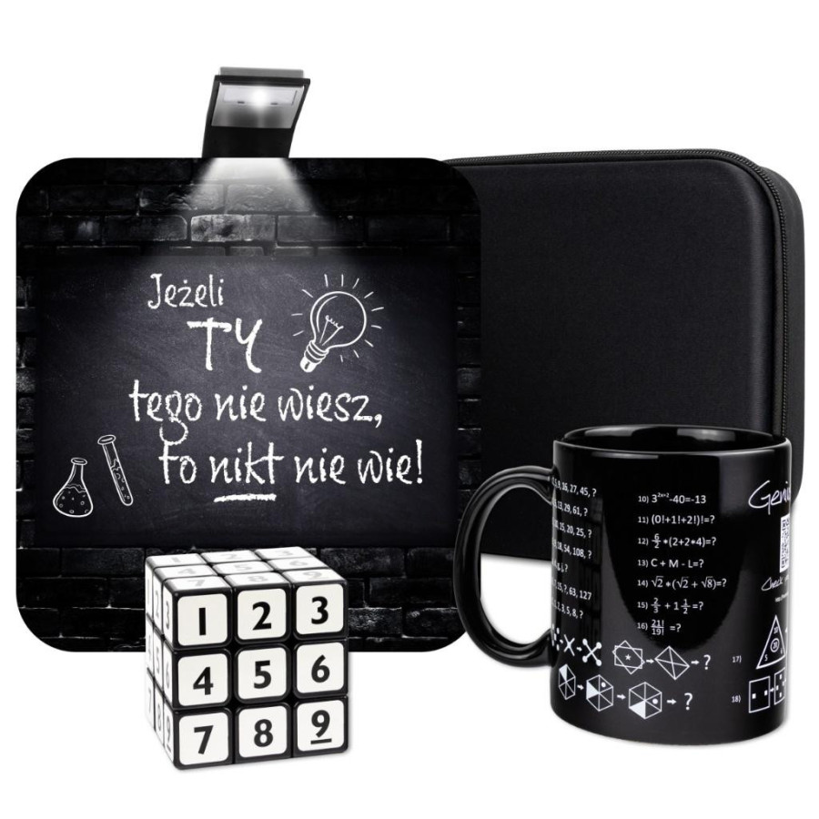 Ten zestaw prezentowy to doskonały wybór dla tych, którzy uwielbiają wyzwania umysłowe i czerpią radość z rozwiązywania zagadek. Sprawdzi się jako upominek dla przyjaciela, który zawsze imponuje wiedzą, albo jako wyróżnienie dla nauczyciela, który inspiruje do odkrywania świata nauki. To również świetna propozycja na prezent z okazji awansu. Niezależnie od okazji, ten zestaw z pewnością wywoła uśmiech na twarzy każdego geniusza, który ceni nie tylko wiedzę, ale i nutę humoru.