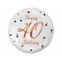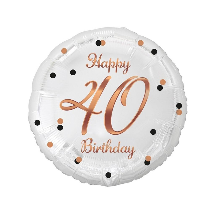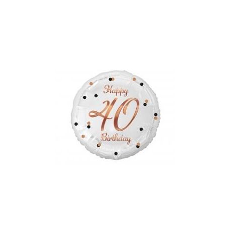 Balon foliowy Liczba 40, B&C Happy 40 Birthday, biały, nadruk różowo-złoty, 18" Rozmiar: 45 cm (18") Kształt: Okrągły Kolor: Biały ze złotym nadrukiem Nadruk: Happy 40 Birthday Ilość sztuk w opakowaniu: 1 Producent: Godan S.A. Kolekcja: Beauty&Charm Balony są przeznaczone do napełnienia helem. Napełnienie ich powietrzem spowoduje, że balony nie będą się unosić. Balony nie są napełnione helem ani powietrzem. Należy je napełnić samodzielnie. Balon wyposażony w samozamykający zawór Szukasz prezentu na 40 urodziny? Organizujesz czterdzieste urodziny i chcesz zrobić efektowne dekoracje? Wybierasz się na imprezę urodzinową 40 latka i zastanawiasz się jaki prezent wybrać? Czarny balon foliowy ze złotym nadrukiem Happy 40 Birthday będzie doskonałym wyborem! Balon wykonaliśmy z mocnej folii, dzięki czemu jest bardzo wytrzymały. Łatwo go napełnisz helem lub powietrzem a samozamykający system uniemożliwi ucieczkę helu po napełnieniu. Nie masz helu? Nic straconego! Weź rurkę (słomkę), włóż ją do otworu napełniania i nadmuchaj balon foliowy powietrzem. Pamiętaj, że balon foliowy napełniony powietrzem nie będzie się unosił.