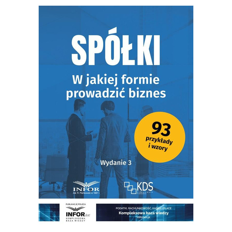 Wybór formy prowadzenia działalności gospodarczej to jedna z kluczowych kwestii, jakie trzeba rozstrzygnąć podczas otwierania własnego biznesu. Od tego zależą m.in. późniejszy sposób podejmowania decyzji w firmie, odpowiedzialność za jej prowadzenie oraz podział zysków. Osoba rozpoczynająca prowadzenie biznesu bądź planująca jego przekształcenie ma do wyboru wiele form prawnych, w których może prowadzić działalność. Prawo polskie wyróżnia 8 różnych spółek. Najprostszą z nich jest spółka cywilna. Pozostałe to spółka jawna, partnerska, komandytowa, komandytowo-akcyjna, spółka z ograniczoną odpowiedzialnością, prosta spółka akcyjna i wreszcie spółka akcyjna - najbardziej sformalizowana spośród wymienionych. Każda ze spółek ma swoje wady i zalety. Dlatego też, wybierając najkorzystniejszą formę prowadzenia działalności, należy poznać i rozważyć wszystkie aspekty prawne wpływające na jej funkcjonowanie. Trzeba też uwzględnić rozmiar działalności, możliwości finansowe, a także poziom ryzyka związanego z otwieranym biznesem. W tym względzie szczególnie praktyczne jest zestawienie najważniejszych zalet i wad wszystkich form prowadzenia działalności w Polsce, w tym także rozwiązań podatkowych. Całość jest poparta przykładami i wzorami dokumentów. Czytelnik dowie się z publikacji m.in.: jakie zalety ma prowadzenie biznesu w formie spółki kapitałowej lub osobowej, jak funkcjonują poszczególne typy spółek, jakie koszty wiążą się z działalnością w formie spółki, czy prosta spółka akcyjna jest lepsza od spółki z o.o. ATUTY PUBLIKACJI: Prosty język, wiele przykładów i wzorów dokumentów, zwięzłość, praktyczność.