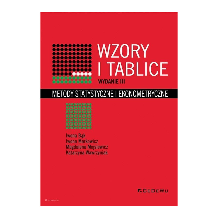 Opracowanie WZORY I TABLICE - Metody statystyczne i ekonometryczne kierowane jest zarówno do studentów, jak i praktyków stosujących różnorodne metody ilościowe w analizie danych statystycznych. W czterech kolejnych rozdziałach zawarto: wzory ze statystyki opisowej, wzory ze statystyki matematycznej, wzory z podstaw ekonometrii i prognozowania, wzory z metody reprezentacyjnej, oraz w rozdziale piątym: tablice statystyczne. Doświadczenia Autorek (nauczycieli akademickich) wskazują na przydatność zebranych w jednym opracowaniu wzorów i tablic niezbędnych do studiowania przedmiotów, w ramach których stosowane są metody ilościowe, a także do pisania prac dyplomowych czy przeprowadzania analiz różnorodnych danych statystycznych. Odpowiednie uporządkowanie wzorów i tablic oraz ich prezentacja wraz z niezbędnym opisem powinny ułatwić Czytelnikowi korzystanie z prezentowanego opracowania.