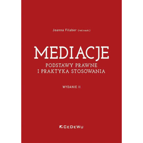 Mediacja w systemie prawnym to najbardziej powszechne postępowanie występujące w prawie prywatnym i publicznym, które bez przewlekłości sądowych postępowań prowadzi do budowania "relacji prawnych" i rozwiązywania sporów przez same skonfliktowane podmioty. Często do rozwiązania sporu dochodzi tylko dzięki szczególnemu rodzajowi negocjacji prowadzonych przez strony sporu, przy pomocy neutralnej osoby trzeciej, czyli mediatora. Autonomia stron i bezstronność mediatora bezpośrednio prowadzi do szybkiego i ostatecznego rozwiązania sporu, a jego wynik jest zaakceptowany przez strony w toku zaledwie kilku sesji mediacyjnych. OMÓWIONE W KSIĄŻCE ZAGADNIENIA: mediacje w obszarze prawa administracyjnego mediacje w obszarze prawa pracy mediacje a cywilne postępowanie sądowe mediacje w obszarze prawa karnego mediacje w obszarze opieki zdrowotnej i błędów medycznych. CZYTELNICY, DO KTÓRYCH SKIEROWANA JEST KSIĄŻKA: mediatorzy, adwokaci, radcy prawni i inni przedstawiciele środowiska prawniczego pracownicy naukowi z obszaru nauk społecznych oraz nauk medycznych studenci I i II stopnia kierunków: prawo w biznesie, administracja, zarządzanie oraz nauki o zdrowiu; studiów jednolitych magisterskich na kierunku prawo i kierunku lekarskim oraz słuchacze studiów podyplomowych. "Jest to pierwsze w naszej literaturze tak szerokie opracowanie dotyczące problematyki mediacji (...). Ze względu na swój zakres opracowanie stanowi jedną z najszerszych w polskiej literaturze przedmiotu prac poświęconych instytucji mediacji". prof. dr hab. A. Śmieja, fragment recenzji
