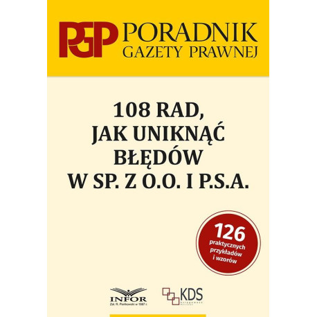 Publikacja "108 rad, jak uniknąć błędów w sp. z o.o. i P.S.A." to praktyczny przewodnik dla przedsiębiorców i osób zarządzających spółkami kapitałowymi. Spółka z ograniczoną odpowiedzialnością (sp. z o.o.) i prosta spółka akcyjna (P.S.A.) to jedne z najpopularniejszych form prowadzenia działalności gospodarczej, które zapewniają ochronę majątku wspólników w przypadku niepowodzenia biznesowego. Aby spółki te mogły bezproblemowo funkcjonować, konieczne jest, aby zostały prawidłowo założone i odpowiednio zarządzane - zgodnie z prawem oraz interesem wspólników. Niestety, w praktyce zdarzają się sytuacje, w których dochodzi do nieprawidłowości w funkcjonowaniu spółki kapitałowej. Warto o nich wiedzieć - na czym polegają i jak ich uniknąć - ponieważ zazwyczaj skutki różnych uchybień wiążą się z ryzykiem prawnym i finansowym. Autorzy poradnika oferują zestaw 108 praktycznych porad, które pomogą uniknąć najczęściej popełnianych błędów w codziennej działalności spółki z ograniczoną odpowiedzialnością oraz prostej spółki akcyjnej. Obejmuje to zarówno aspekty związane z formalnościami przy zakładaniu spółki, jak i zarządzaniem, księgowością, odpowiedzialnością wspólników oraz działaniami zgodnymi z obowiązującym prawem. Książka dostarcza wskazówek, które mogą zapobiec potencjalnym problemom i wesprzeć przedsiębiorców w efektywnym prowadzeniu biznesu. Z poradnika Czytelnik dowie się np: Jakie negatywne skutki wiążą się z błędami przy zawieraniu różnych umów? Dlaczego rejestracja jednoosobowej spółki z ograniczoną odpowiedzialnością jest niekorzystna? Kiedy dochodzi do nieprawidłowej reprezentacji spółki? Jak prawidłowo zwołać zgromadzenie wspólników? Kiedy nie można wypłacać dywidendy w prostej spółce akcyjnej? Dlaczego zawarcie umowy o pracę z dominującym wspólnikiem jest niekorzystne? Jakie konsekwencje ponosi wspólnik wydający środki spółki na prywatne potrzeby? Czy obowiązkowe ubezpieczenie OC biur rachunkowych zawsze zabezpiecza ryzyko spółki? Kiedy używanie domeny internetowej może wprowadzać w błąd? Ponadto poradnik zawiera wzory najważniejszych dokumentów wykorzystywanych w działalności spółki z ograniczoną odpowiedzialnością oraz prostej spółki akcyjnej, co ułatwia przygotowanie niezbędnej dokumentacji i zapewnia zgodność z przepisami prawa. Dzięki temu Czytelnik zyskuje nie tylko wiedzę teoretyczną, lecz także gotowe narzędzia do skutecznego zarządzania spółką. Jest to lektura obowiązkowa dla każdego, kto planuje założyć spółkę kapitałową lub już nią zarządza i chce zminimalizować ryzyko błędów, które mogą prowadzić do poważnych konsekwencji prawnych i finansowych. Publikacja dostarczy potrzebnych, aktualnych i uporządkowanych informacji zarówno przedsiębiorcom, jak i osobom odpowiedzialnym za rozliczenia podatkowe i finansowe w firmach - specjalistom z biur rachunkowych, księgowym i głównym księgowym.