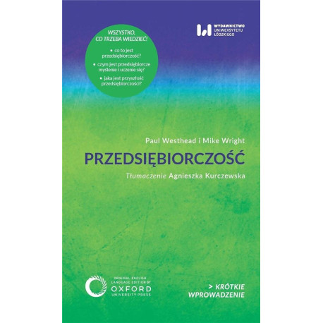 KRÓTKIE WPROWADZENIE książki, które zmieniają sposób myślenia To książka poszerzająca rozumienie przedsiębiorczości, przedstawiająca jej różnorodność, bogactwo form i wieloaspektowość, ale też znaczenie gospodarcze i społeczne. Odkrywa przed Czytelnikiem, że przedsiębiorczość to nie tylko zakładanie firm, lecz także towarzyszą jej dużo głębsze procesy poznawcze, w których naczelną rolę odgrywają sposobności przedsiębiorcze przedsiębiorca musi je zidentyfikować, ocenić ich wartość, a następnie wcielić w życie. Publikacja uczy zatem patrzeć zarówno na rezultaty działalności gospodarczej, jak i przeprowadza nas przez cały intrygujący proces, rozpoczynający się w umyśle przedsiębiorcy od pomysłu powstałego w wyniku interakcji ze sposobnością przedsiębiorczą aż po jego wdrożenie, co powoduje powstanie czegoś nowego. Warto podkreślić, że przedsiębiorczość może trwać również po założeniu firmy, choć niekoniecznie będzie prowadzić do jej dynamicznego rozwoju. * Interdyscyplinarna seria KRÓTKIE WPROWADZENIE piórem uznanych ekspertów skupionych wokół Uniwersytetu Oksfordzkiego przybliża aktualną wiedzę na temat współczesnego świata i pomaga go zrozumieć. W atrakcyjny sposób prezentuje najważniejsze zagadnienia XXI w. od kultury, religii, historii przez nauki przyrodnicze po technikę. To publikacje popularnonaukowe, które w formule przystępnej, dalekiej od akademickiego wykładu, prezentują wybrane kwestie. Książki idealne zarówno jako wprowadzenie do nowych tematów, jak i uzupełnienie wiedzy o tym, co nas pasjonuje. Najnowsze fakty, analizy ekspertów, błyskotliwe interpretacje. Opiekę merytoryczną nad polską edycją serii sprawują naukowcy z Uniwersytetu Łódzkiego: prof. Krystyna Kujawińska Courtney, prof. Ewa Gajewska, prof. Aneta Pawłowska, prof. Jerzy Gajdka, prof. Piotr Stalmaszczyk.