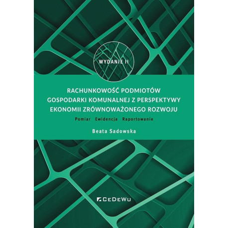 "Rachunkowość podmiotów gospodarki komunalnej z perspektywy ekonomii zrównoważonego rozwoju. Pomiar - Ewidencja - Raportowanie" to monografia adresowana do wszystkich, którzy interesują się rachunkowością, zrównoważonym rozwojem i gospodarką komunalną. Monografia obejmuje takie zagadnienia, jak: - Zrównoważony rozwój jako obszar badawczy ekonomii - Pomiar w teorii ekonomii - Realizacja funkcji informacyjnej rachunkowości - Funkcjonowanie podmiotów gospodarki komunalnej - Pomiar i raportowanie realizacji celów zrównoważonego rozwoju przez podmioty gospodarki komunalnej "Książka napisana przez Beatę Sadowską dotyczy niezwykle ważnej problematyki, jaką jest dostarczanie informacji o realizacji celów zrównoważonego rozwoju przez jednostki gospodarki komunalnej. Głównym źródłem tych informacji może być rachunkowość, która powinna dokonać pomiaru, ujęcia w księgach oraz dostarczyć informacje niezbędne szerokiemu gronu odbiorców [...]. Szczególnie jest to ważne w jednostkach, które świadczą usługi komunalne powszechnie dostępne, takie jak dostarczanie wody czy energii elektrycznej, odbiór odpadów komunalnych, dostęp do komunikacji miejskiej [...]. Ważny jest opracowany przez Autorkę indeks SUGOMAR-BS [...]. Autorka w opracowaniu wykazała się wiedzą teoretyczną i praktyczną oraz umiejętnie wykorzystała przeprowadzone przez siebie badania i studia literaturowe w rozważaniach na temat rachunkowości podmiotów gospodarki komunalnej realizującej cele zrównoważonego rozwoju". Z recenzji dr hab. Joanny Wielgórskiej-Leszczyńskiej, prof. SGH w Warszawie "Monografię dr Beaty Sadowskiej uważam za ważną teoretycznie i potrzebną praktycznie [...]. Zasługą Autorki jest stwierdzenie istnienia luki badawczej w zakresie wykorzystywania instrumentów rachunkowości do pomiaru i raportowania realizacji celów zrównoważonego rozwoju przez podmioty gospodarki komunalnej [...]. Zarówno pomysł badawczy Autorki, jak i sposób jego realizacji uznaję za oryginalny wkład do rozwoju nauk ekonomicznych [...]. Oryginalnym wkładem Autorki jest poszerzenie metodologii pomiaru efektów osiąganych dzięki realizacji celów zrównoważonego rozwoju w gospodarce komunalnej [...]. Rozprawa, jako pierwsza w Polsce i jedna z nielicznych na świecie, podejmuje teoretyczne i praktyczne rozważania nad obecnością, pomiarem i raportowaniem celów zrównoważonego rozwoju w gospodarce komunalnej. Istotnym wkładem dr Beaty Sadowskiej do nauki jest stworzenie autorskiego modelu pomiaru realizacji celów zrównoważonego rozwoju w podmiotach gospodarki komunalnej oraz opracowanie indeksu SUGOMAR-BS". Z recenzji dr hab. Bożeny Ryszawskiej, prof. UE we Wrocławiu