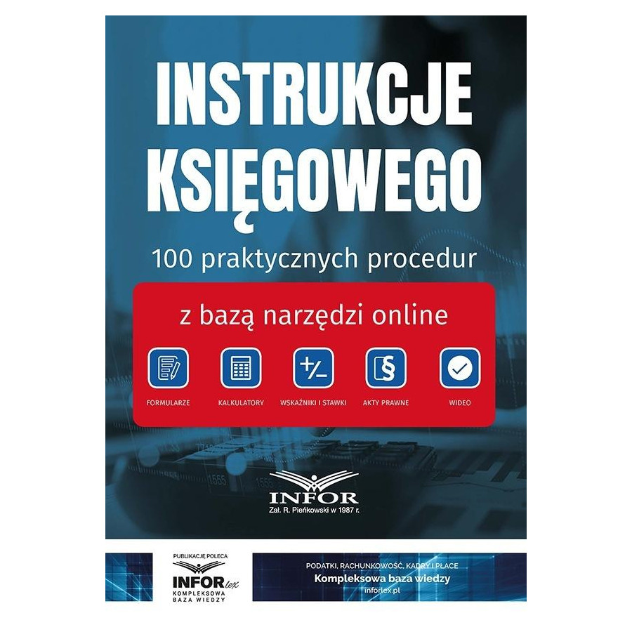 Publikacja jest powiązana ze specjalnym, aktualizowanym serwisem internetowym. W książce są 62, a w powiązanym z nią serwisie jest dodatkowo dalszych 38 praktycznych instrukcji, które objaśniają wybrane procedury podatkowe, księgowe, kadrowe oraz z dziedziny prawa cywilnego i gospodarczego. Trudne i skomplikowane zagadnienia prawne i proceduralne przedstawiono w sposób prosty, zwięzły i przystępny przy użyciu zestawień, tabel, przewodników "krok po kroku". To kolejne wydanie popularnych instrukcji zawiera zaktualizowane, najnowsze wersje dotychczasowych pozycji, a także nowości. Publikację wzbogacają między innymi instrukcje: Jak korzystać z procedury SME w innych krajach UE Odsetki hipotetyczne w kosztach podatnika CIT - rozliczenie ulgi z tytułu zatrzymanych zysków Wakacje składkowe - krok po kroku Minimalne wynagrodzenie w 2025 r. i świadczenia od niego zależne Obowiązkowe e-Doręczenia dla firm i zawodów zaufania publicznego Serwis obejmuje elektroniczną wersję 100 instrukcji, z których 62 zamieszczono w książce. Instrukcje będą aktualizowane w serwisie, jeśli w 2025 r. zmienią się przepisy prawa. Każda instrukcja zawarta w książce oraz w serwisie jest powiązana z odpowiadającymi jej: materiałami wideo, formularzami, kalkulatorami, wskaźnikami oraz przepisami prawnymi. Dzięki temu - korzystając z instrukcji w wersji elektronicznej - można łatwo dotrzeć do dodatkowych potrzebnych informacji i narzędzi, aby w pełni zrozumieć omawiane zagadnienie i rozwiać pojawiające się wątpliwości. Ponadto materiały dedykowane instrukcjom są w serwisie pogrupowane rodzajowo - w widoku głównym można zobaczyć osobno bloczki: wideoporad, aktów prawnych, formularzy, wskaźników i stawek oraz kalkulatorów. Serwis INSTRUKCJE wyposażony jest również w wyszukiwarkę, która precyzyjnie przeszukuje wszystkie zasoby serwisu, prezentując w wynikach instrukcje i materiały dodatkowe odpowiadające wyszukiwanemu hasłu. Wszystkie instrukcje w wersji elektronicznej oraz powiązane z nimi materiały dodatkowe zawierają oznaczenie aktualności. Serwis INSTRUKCJE gwarantuje stałą aktualizację zarówno instrukcji w nim zawartych, jak i połączonych z instrukcjami materiałów dodatkowych. W przypadku zmian w przepisach prawnych instrukcja w wersji elektronicznej będzie zawierała cezurę czasową, od kiedy obowiązuje zmieniona treść instrukcji związana ze zmianą prawa. Dzięki temu Czytelnik będzie wiedział, od kiedy zastosować instrukcję i powiązane z nią materiały w zaktualizowanej wersji. Aktywne narzędzia udostępnione w serwisie INSTRUKCJE pozwalają na szybkie wypełnienie ciążących na podatniku obowiązków podatkowych, pracowniczych, zusowskich i administracyjnych. Zbiór aktów prawnych zawartych w serwisie INSTRUKCJE to najczęściej stosowane przepisy, z których korzystają podatnicy i biura rachunkowe. ATUTY PUBLIKACJI: Jedyna na rynku publikacja powiązana z rozbudowanym serwisem elektronicznym, który zawiera związane tematycznie z instrukcjami zamieszczonymi w książce: formularze, kalkulatory, akty prawne, wskaźniki i stawki oraz pakiet materiałów wideo. Wszystkie instrukcje i powiązane z nimi materiały są aktualne. Każdą instrukcję opracowano w taki sposób, aby ujętą w niej procedurę objaśnić przystępnie i kompleksowo.