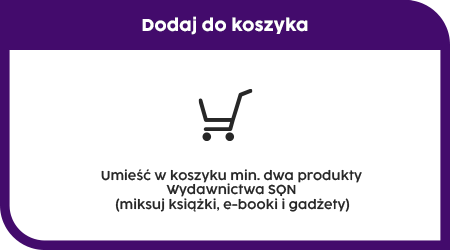 (Promocja obowiązuje na wszystkie produkty SQN: książki, gadżety i e-booki. Promocja naliczy się w koszyku po wpisaniu kodu rabatowego. Wymaga zapisu na newsletter. Zadziała na już przecenione produkty. Pakiet traktowany jest jak jeden produkt. Nie łączy się z innymi kodami. Nie można skalować promocji w ramach jednego koszyka)