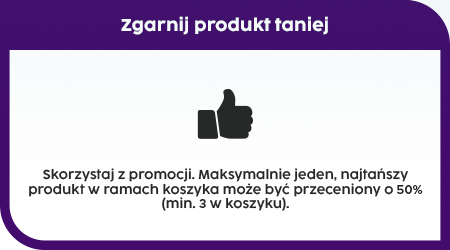 Najtańszy produkt SQN zamówisz z rabatem, a w ramach jednego koszyka, tylko jeden, najtańszy produkt może być tańszy o 25% lub 50%